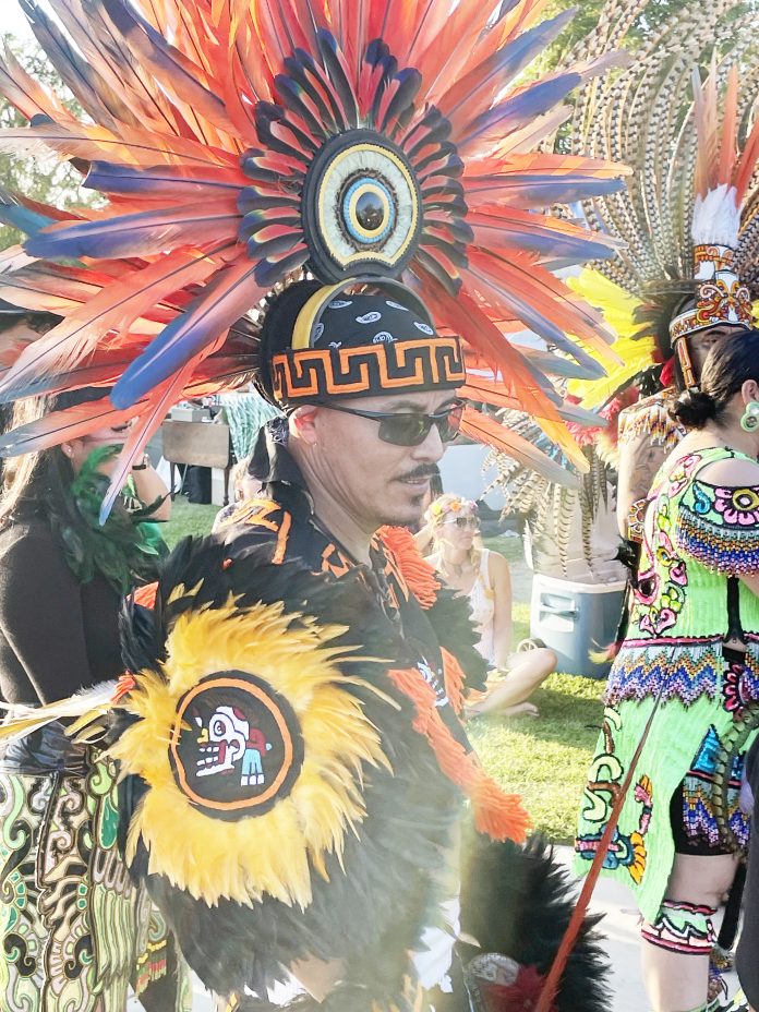 A dancer from the tribal Danza Azteca Long Beach performs the traditional Calpulli Yolizli prayer dance to amplify love throughout the community. A spokesman for the cultural group says they perform traditional dances every Wednesday at MacArthur Park in Long Beach. Maesro Mateo leads the Mexica culture. The public is welcome to attend.