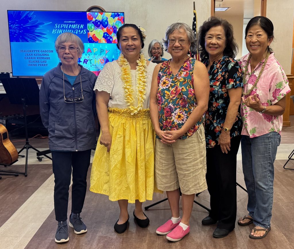 Hedy Anduha then led the singing of “Happy Birthday” to September Birthday Celebrants Malorette “Malu” Gascon, Jean Kitjima, Carrie Kumabe, Elaine Lau, and Irene Perry. Members of the club happily joined in singing birthday wishes to the celebrants.