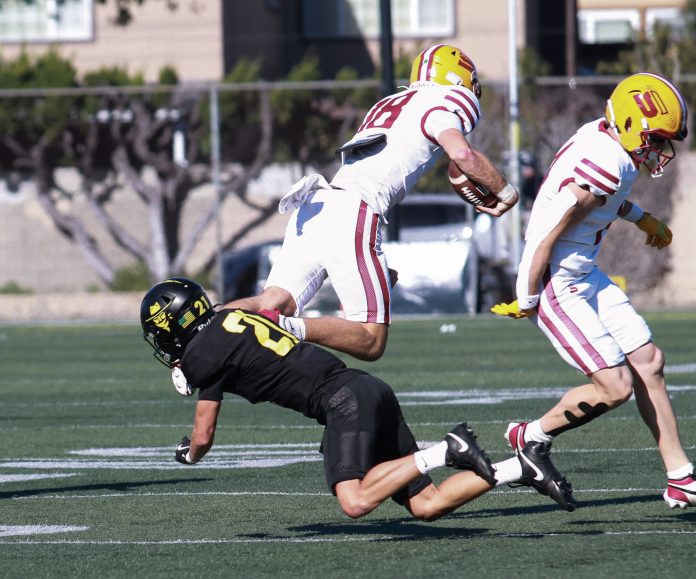The Golden West College football program won its first SCFA Regional Championship with a 33-15 win over Saddleback College on Saturday at Golden West College. The win gives the Rustlers the Southern California State Championship, but they aren’t done, as they will host College of San Mateo, the Northern California Champions, on Saturday at LeBard Stadium on the campus of Orange Coast College. Several local players are players on this year’s team. Pictured is Kennedy High alum, John Bivens, making a tackle on the Saddleback QB. For more visit event-newsenterprise.com.