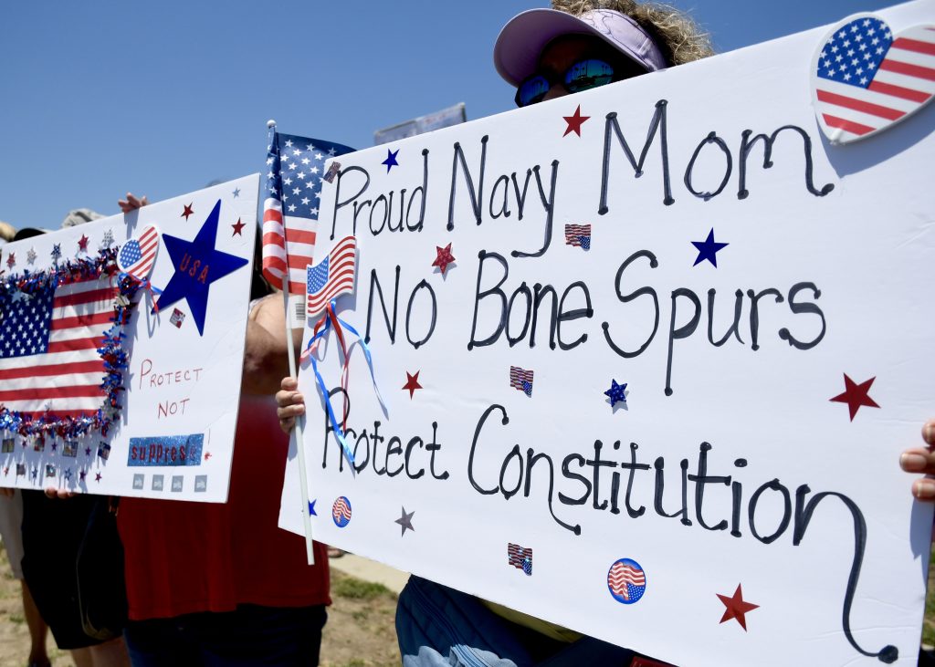 Organizers Stephanie Wade and Amy Stevens, of OC Indivisible Coalition, said it was a protest, not against the troops, but a protest to disagree with the way they are being used.