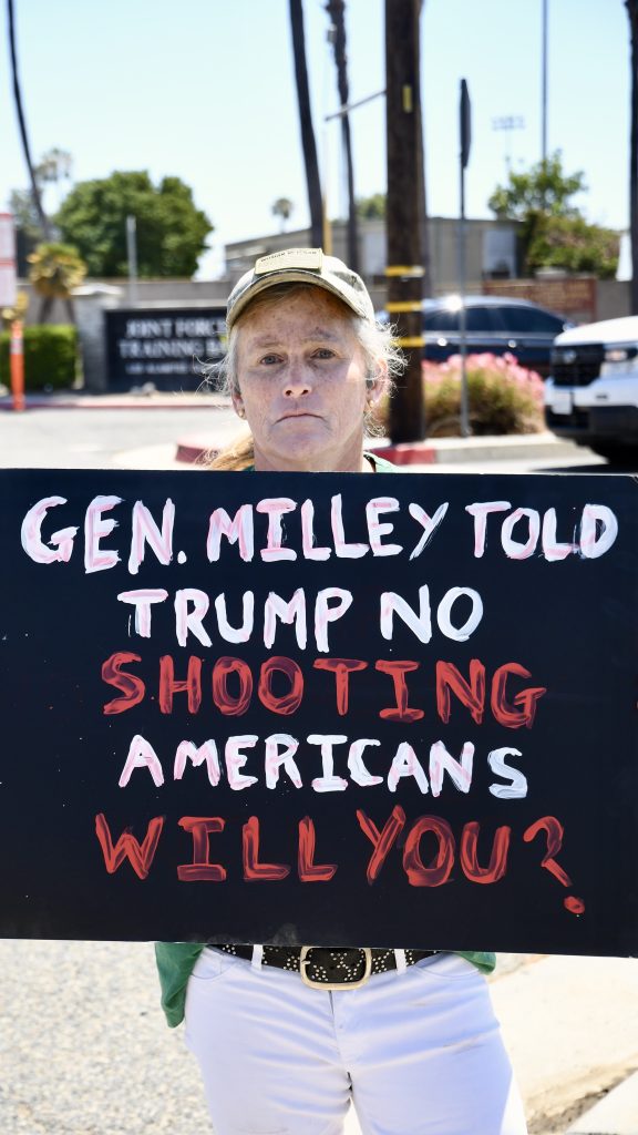 “And in Los Alamitos, 75 people gathered to send a message to the armed troops sent to quell Constitutionally-protected speech, possibly with violence: You don’t have to follow unlawful orders, your oath demands it of you,” said Stevens.