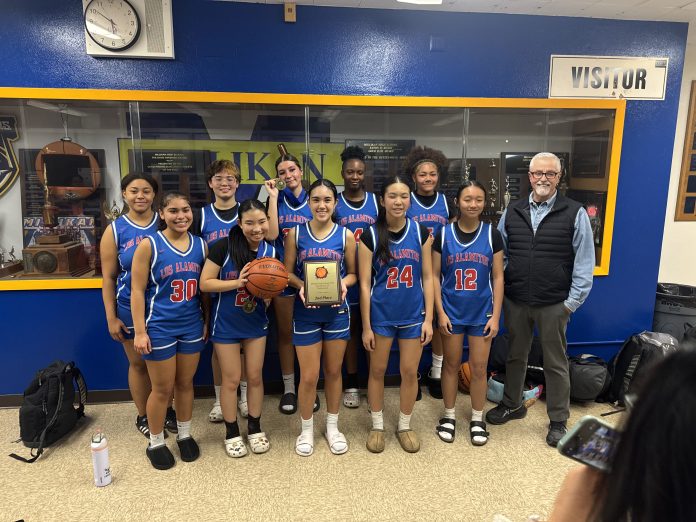 The Los Alamitos JV girls basketball team took home the second-place plaque last weekend at the Millikan “Annual JV Girls Tournament,” finishing the tourney with a 3-1 record, losing to Downey 47-32 in the championship game.