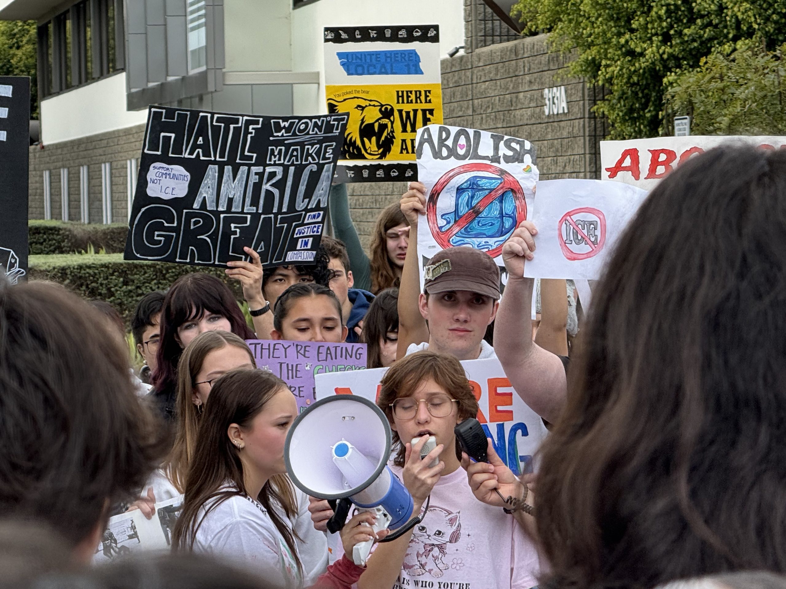 “It doesn’t matter who you support, Republican, Democrat, Libertarian, or Independent, everybody should know that ICE is violating human rights,” one student shouted into the megaphone. “It’s just common human decency to know that what ICE is doing is violating every single human right. Get them out,” she screamed as the students cheered.