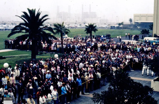First, they stopped at the Seal Beach plant that built the S-II second stage of the rocket, where 3,000 employees turned out to welcome them.