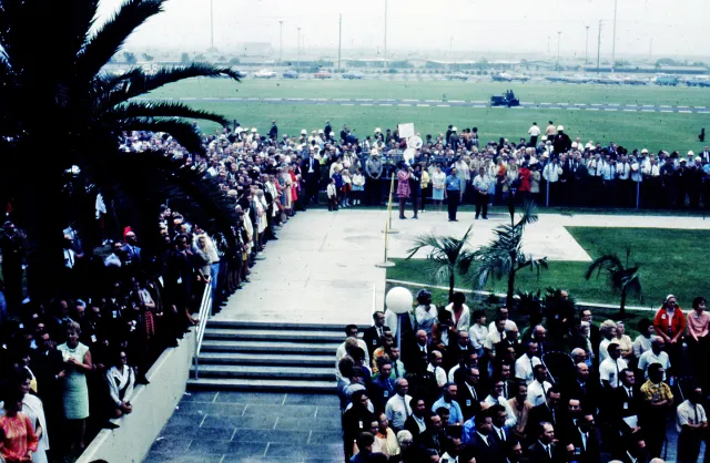 Following the ceremonies in Seal Beach, the two Apollo 11 astronauts drove to Downey, where the command module was built, and thousands more were waiting to celebrate their monumental achievement.