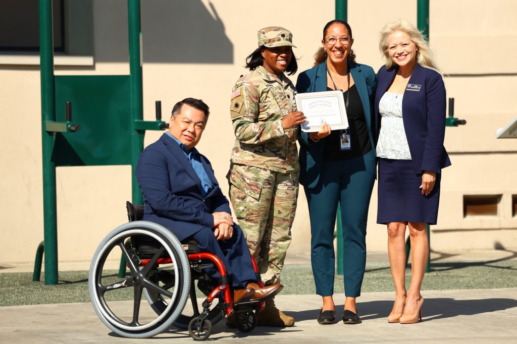 The Orange County Department of Education recognized Sunburst Youth Academy with its inaugural School Impact Award on Tuesday, Oct. 7, during a formation ceremony attended by more than 200 cadets from the academy’s Class 36, along with teachers, cadre, and military staff at Joint Forces Training Base, Los Alamitos.