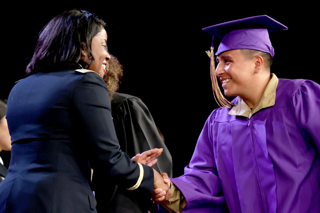 Dressed in a purple cap and gown, Cadet Brianna Garcia shared her tumultuous journey with the crowd of more than 2,000. She bounced through four different high schools before dropping out completely after being told by a school administrator that she would never graduate.